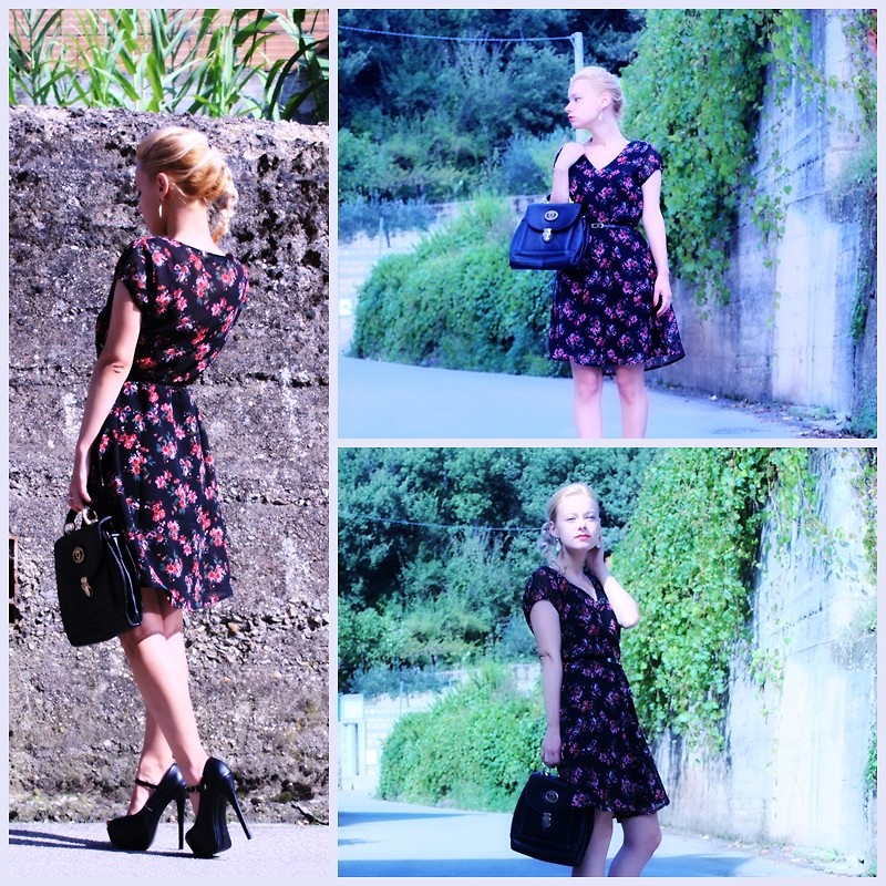 Io ho abbinato l’outfit con abito floreale in maniera un pò retrò e nostalgica, infatti l’abito mi ricorda molto un abitino che mettevo sempre per andare al liceo e mi porta alla mente molti ricordi adolescenziali era l’abito delle prime cotte, dei primi amori e anche di quelli più grandi e magari forse anche di quelli che saranno. Adoro questo outfit con questo abito floreale mi ricorda molto i film vintage.
