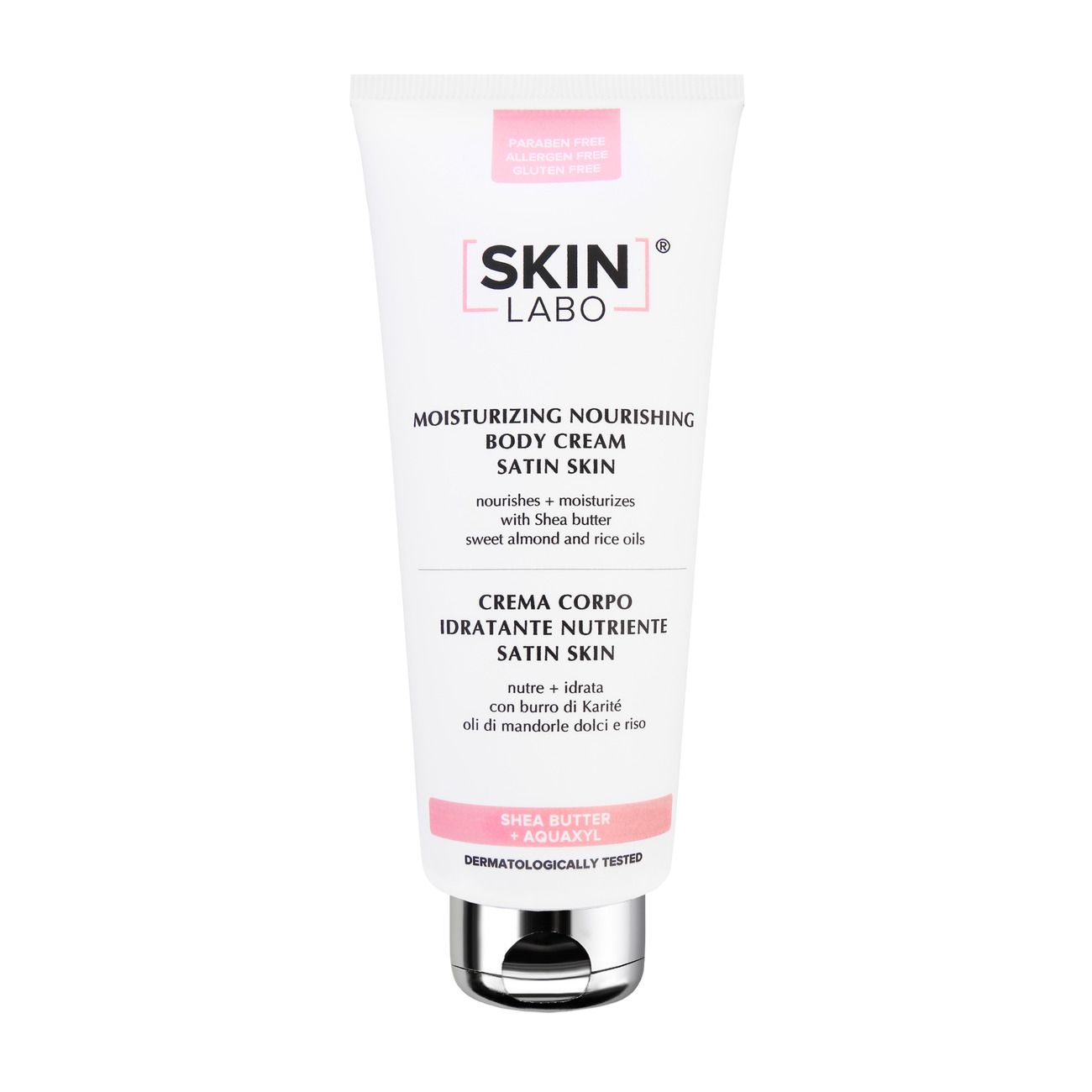La CREMA CORPO IDRATANTE NUTRIENTE SATIN SKIN è una vellutata emulsione di facile assorbimento che nutre la pelle donando un’immediata d’idratazione. La formula contiene una speciale combinazione di preziosi olii, come quello di riso e di mandorle dolci, burro di Karitè conosciuto per la sua azione idratante. Il trattamento è arricchito con Aquaxyl, un attivo idratante che è in grado di uniformare lo strato corneo, rendendo la pelle non solo più idratata, ma anche più resistente alle aggressioni esterne, poiché ottimizza le riserve d’acqua, rallentando quindi il processo di desquamazione, causata da inaridimento o dall’uso di detergenti troppo aggressivi. Come vi dicevo nel post precedente, che trovate qui, SkinLabo è uno dei pochi beauty brand al quale mi affido completamente. SkinLabo è infatti il primo marchio full-beauty made in Italy con all’attivo 7 linee di prodotti che esaltano la bellezza senza parabeni, senza allergeni e senza glutine. Inoltre solo ed esclusivamente per i lettori del mio blog SkinLabo ha pensato ad un codice sconto del 20% TERESA20 da utilizzare (su questi prodotti) direttamente sul sito.